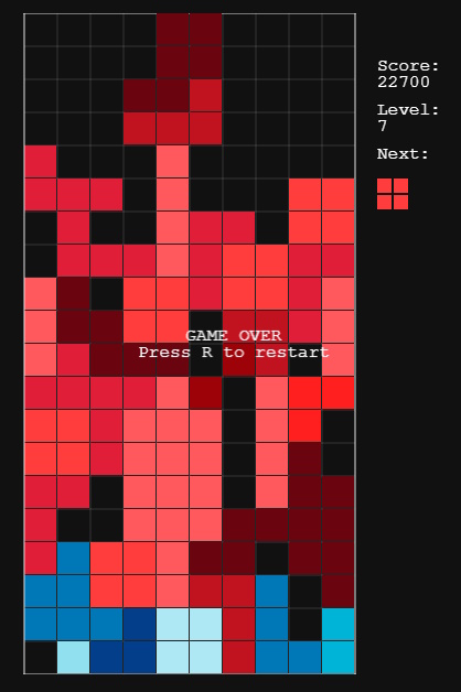 Also, when placing a piece, I feel like the original Tetris has a small delay that allows you to slide pieces slightly after they touch the ground. That’s something I’m missing here.